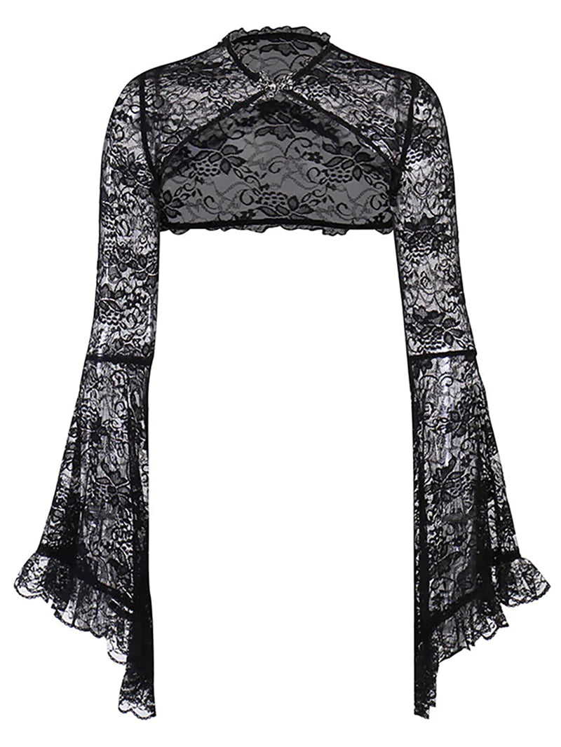 Halloween Bell Sleeve Sexy Lace Hollow Shirt