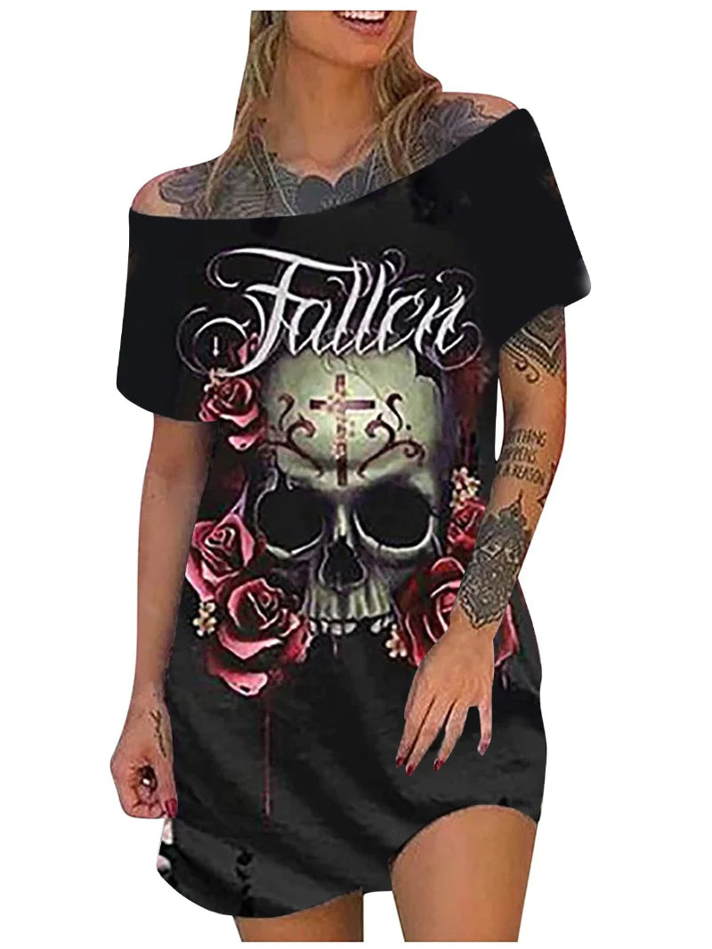 Halloween Scary Printed Off-Shoulder Casual Dress